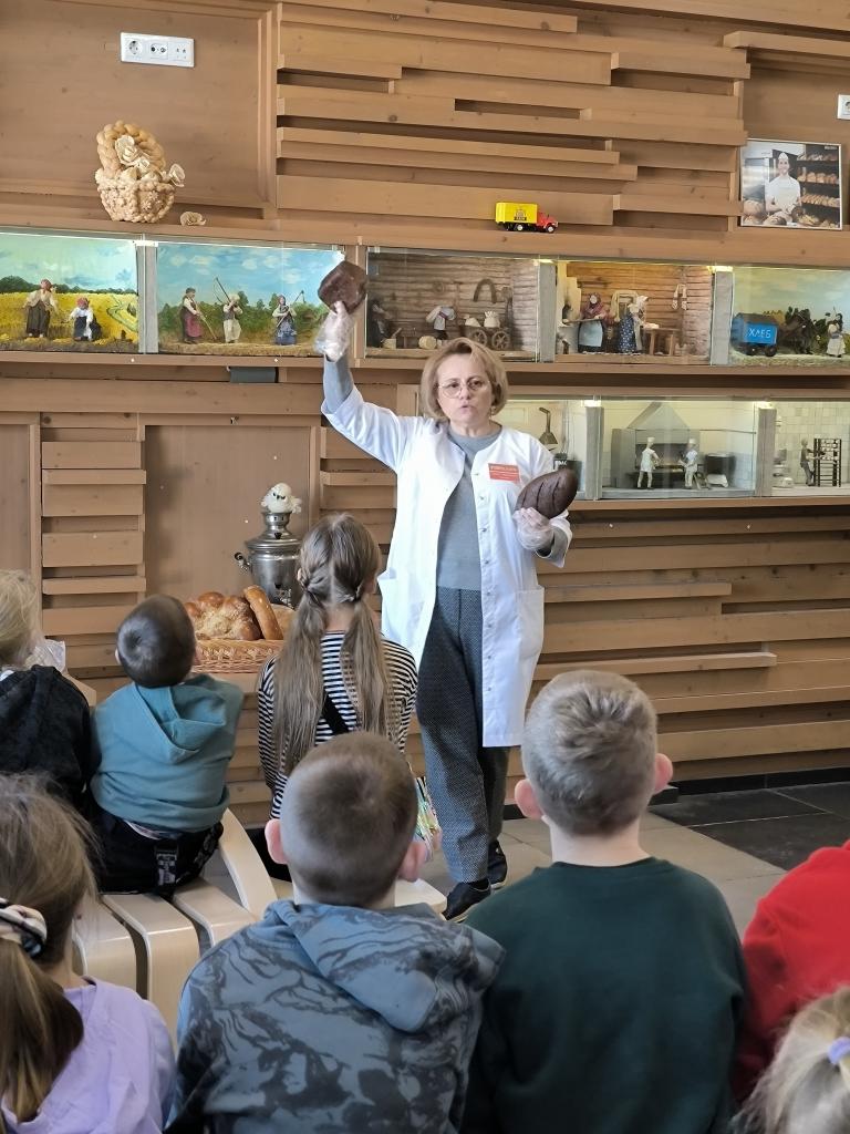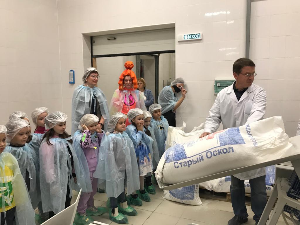 Лариса Николаевна рассказала о том, какую продукцию производит предприятие, как впервые в истории человечества и где появился хлеб, а затем пригласила в цех, где дети познакомились с технологией производства хлеба и другой выпечки.